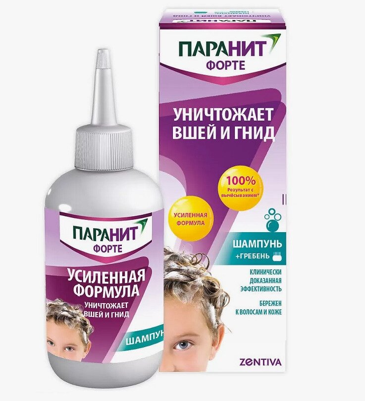 Šampon Paranit Forte Strengthened Formula Shampoo se navíc pohodlně používá: ničení vší a hnid je stejně snadné jako mytí vlasů a kondicionační přísady, které obsahuje, usnadňují odstranění vší hřebenem. Šampon Paranit Forte Strengthened Formula neobsahuje insekticidy, takže si na něj vši nevytvářejí odolnost.