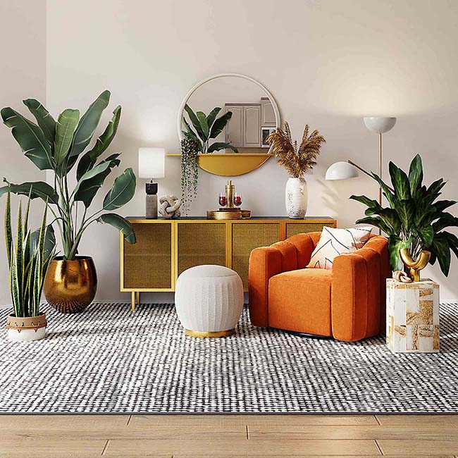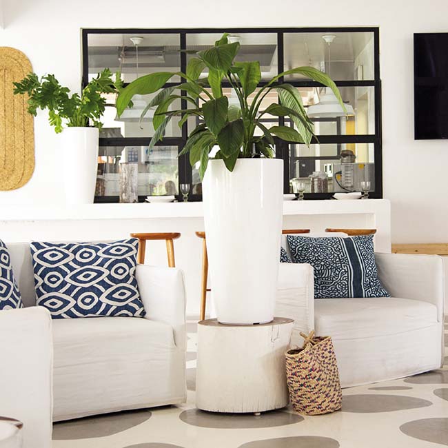 Květináče v interiéru lze také použít pro zónování prostoru. Můžete například umístit několik velkých květin do podlahových květináčů nebo jednu dlouhou nádobu s různými rostlinami na křižovatce kuchyně a obývacího pokoje.