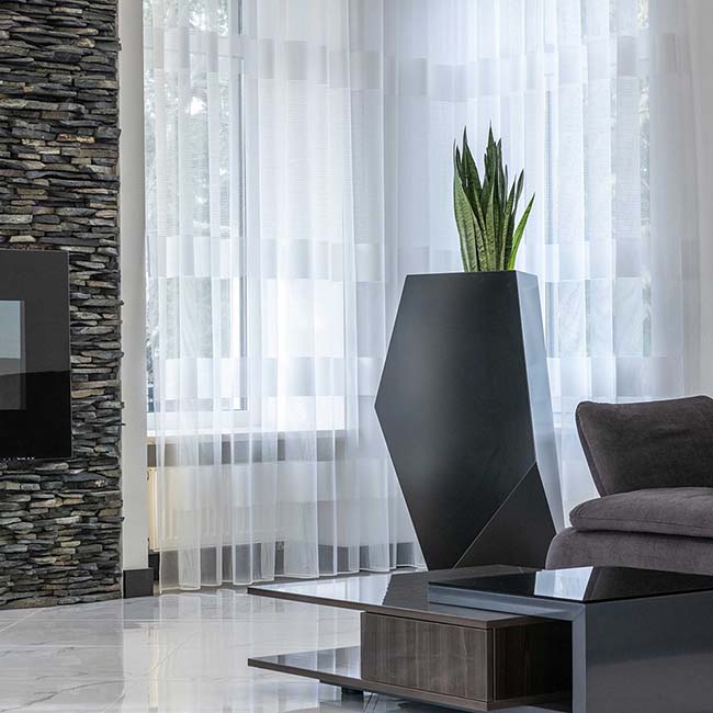 Textura je vybrána na základě stylu interiéru. Například květináče z betonu nebo cortenové oceli jsou spíše o brutálním loftu, bílý lesk a nádoby kovového vzhledu se perfektně hodí do high-tech a „dřevěné“ povrchy budou vypadat v Provence.