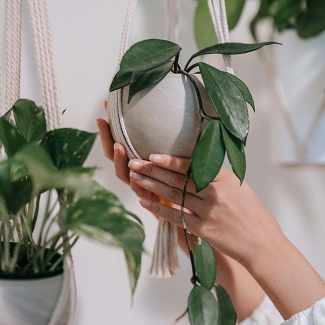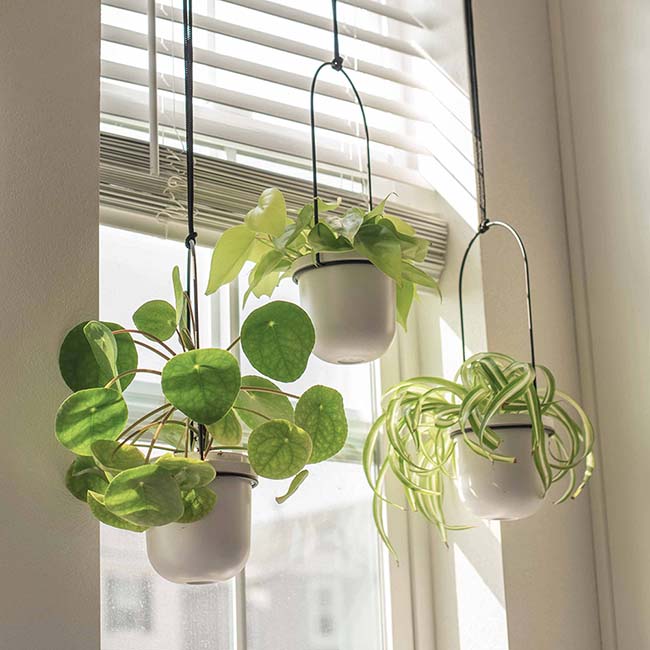Pokud na podlaze nebo poličkách není volné místo, podívejte se blíže na závěsné a nástěnné květináče. Do většiny moderních interiérů skvěle zapadnou závěsné rostliny, které budou sestupovat ze stropu nebo šplhat po stěnách.
