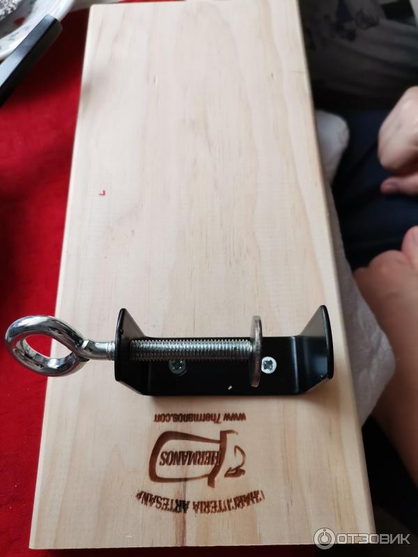 V krabici bylo i prkno, na které mělo upevnit frézu pomocí šroubu. Říká se tomu jamonera.