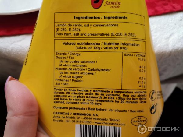 Na Nový rok nám dali curado jamon. Pro nás zvláštní a neobvyklý produkt, ale ve Španělsku je to místní národní jídlo, dokonce delikatesa. Ve skutečnosti se vyrábí ze zadní nohy prasete, která zraje minimálně 9, nebo dokonce 12 měsíců. Náš jamon není plně vyléčený, což znamená, že by neměl být tak páchnoucí jako Serrano nebo Iberico. Ano, jamony jsou také jiné. V našem případě dokonce přichází v mini verzi. Myslím, že toho budeme mít taky hodně. Balení je moc krásné, slavnostní, taková lahůdka se akorát hodí k narozeninám nebo k Novému roku a hodí se i jako dárek. Curado je obecně druh sušeného jamonu. I když se zdá, že všechny tři druhy jsou vysušené.